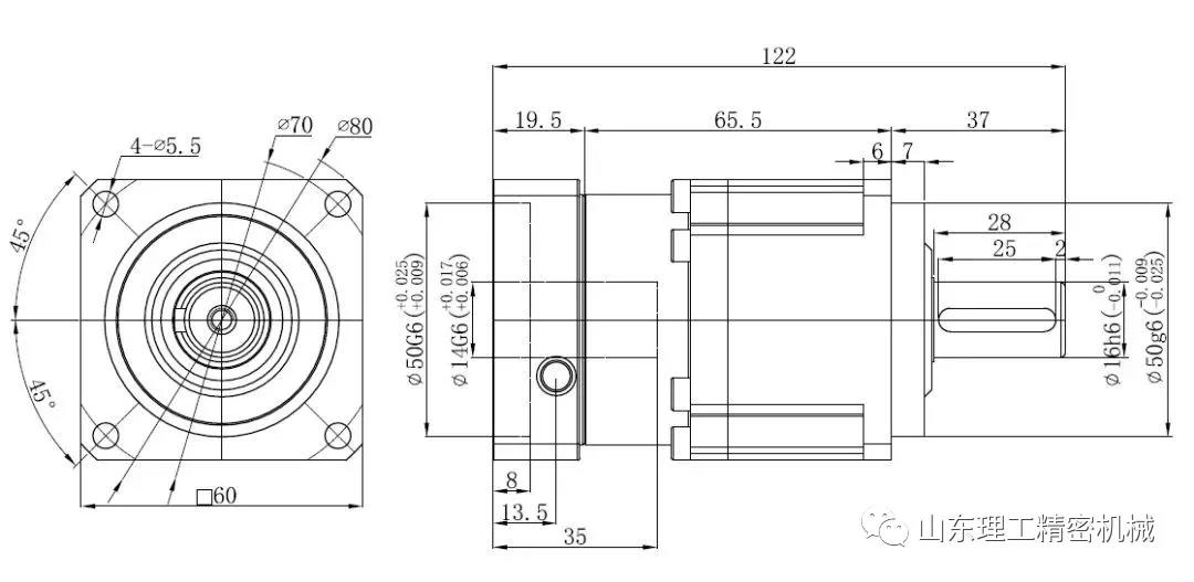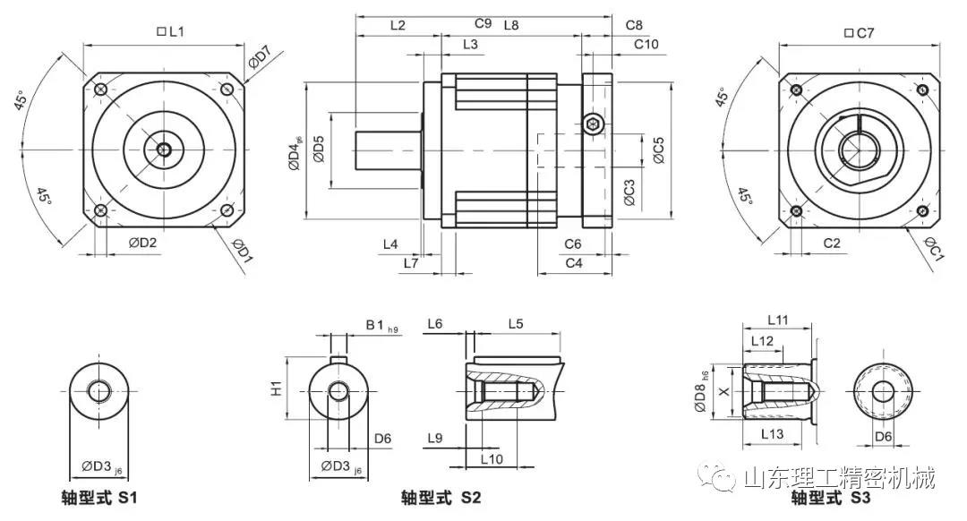 例如這樣一個(gè)圖紙,第一個(gè)接口是減速機(jī)與伺服電機(jī)的接口,這個(gè)通常是需要定制的,減速機(jī)生產(chǎn)廠家會(huì)根據(jù)客戶選擇的伺服電機(jī)的接口來定制減速機(jī)的接口,所以在和減速機(jī)供應(yīng)商溝通的時(shí)候,你需要提供伺服電機(jī)的接口給他們。